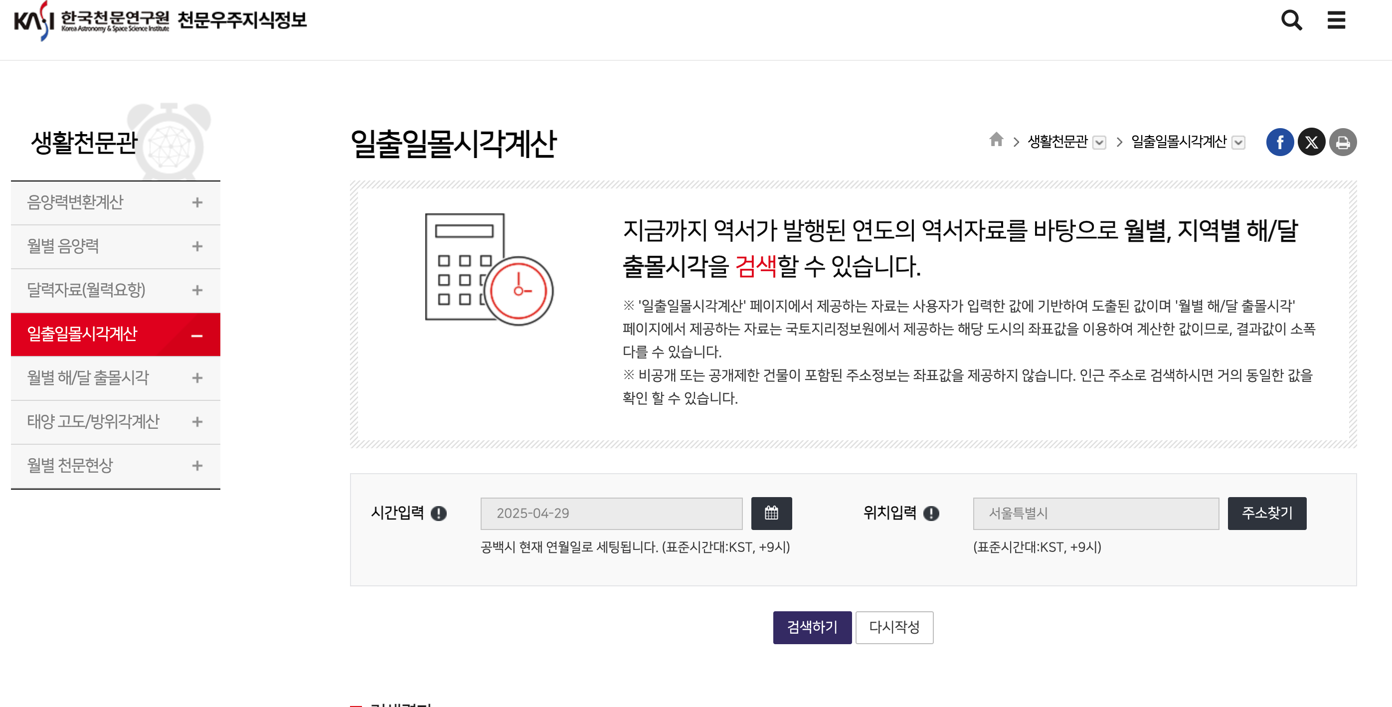 - 한국천문연구원 일출일몰시각계산기 활용하기